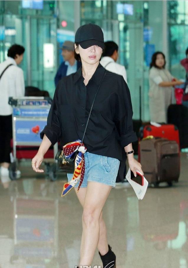 40岁宋慧乔机场照嫩成大学生!衬衫短裤穿搭公式太绝,普通人也能抄作业